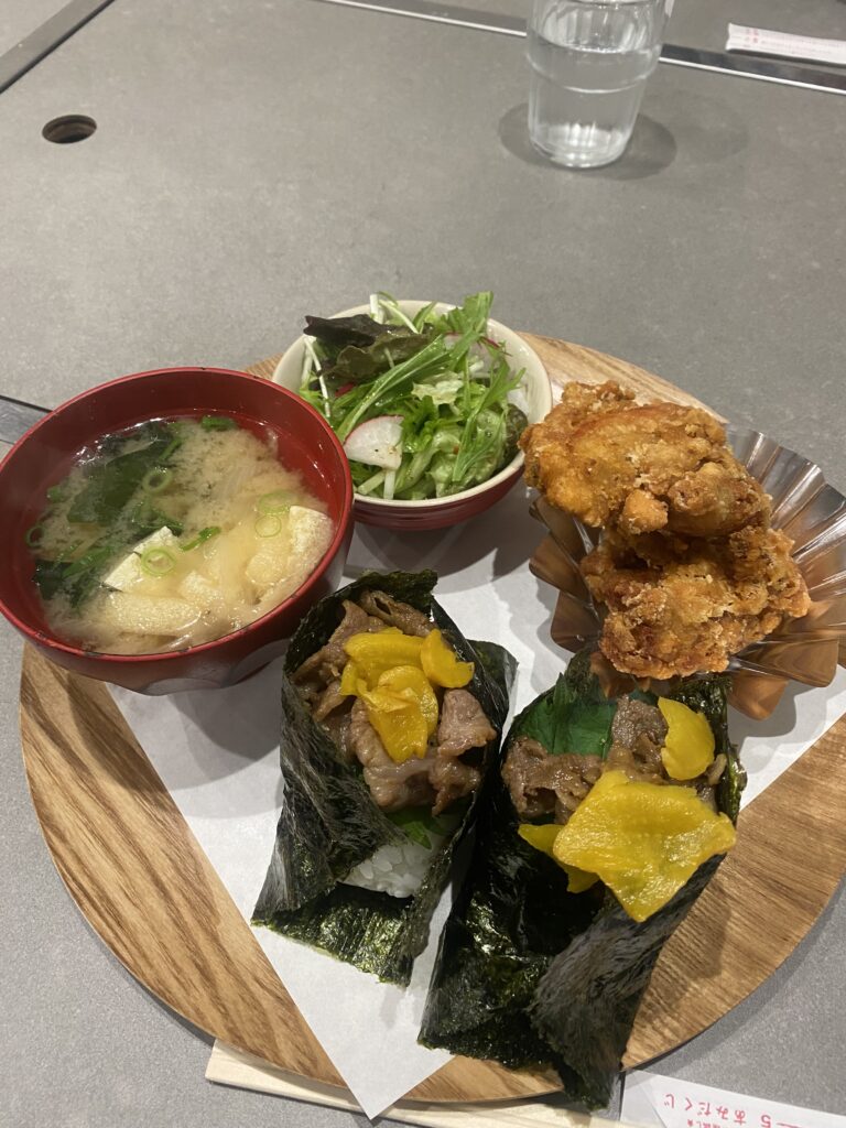 唐揚げは脂っぽさが残っていなくて触感もザクザクしていて唐揚げ屋の唐揚げのようでした。おむすびも上に乗っているお肉がご飯と合ってとても美味しかったです。
