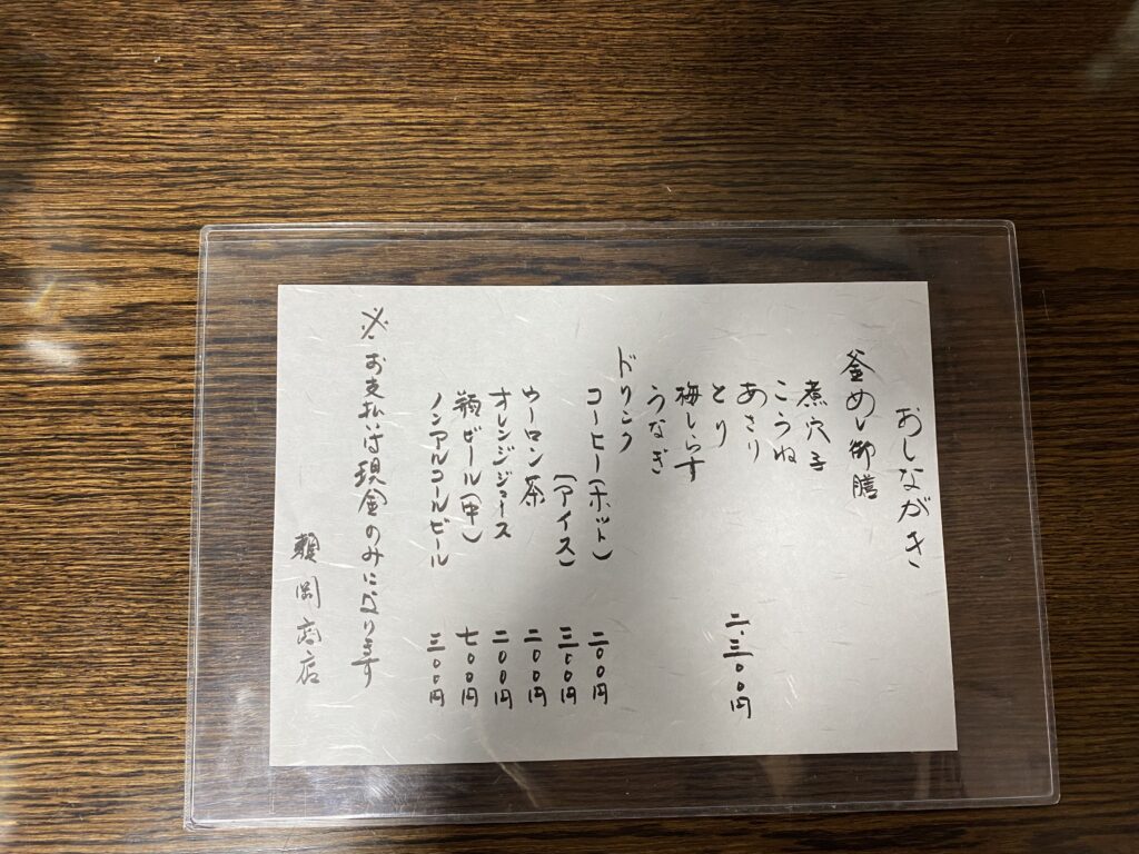 お店は古民家を使用している感じでとても落ち着く雰囲気でした。店内に入ってメニュー表がこんな感じでした。